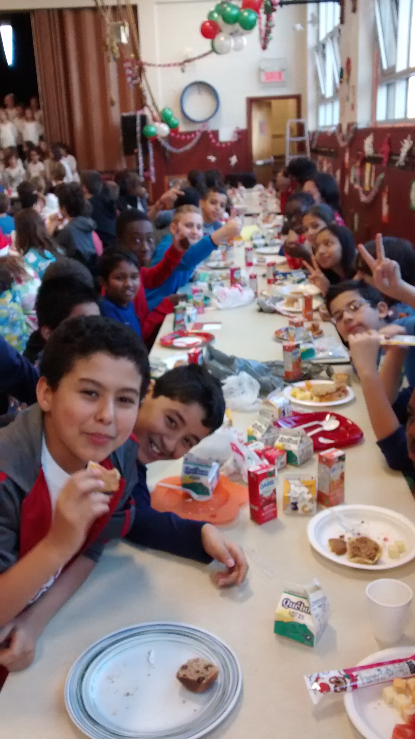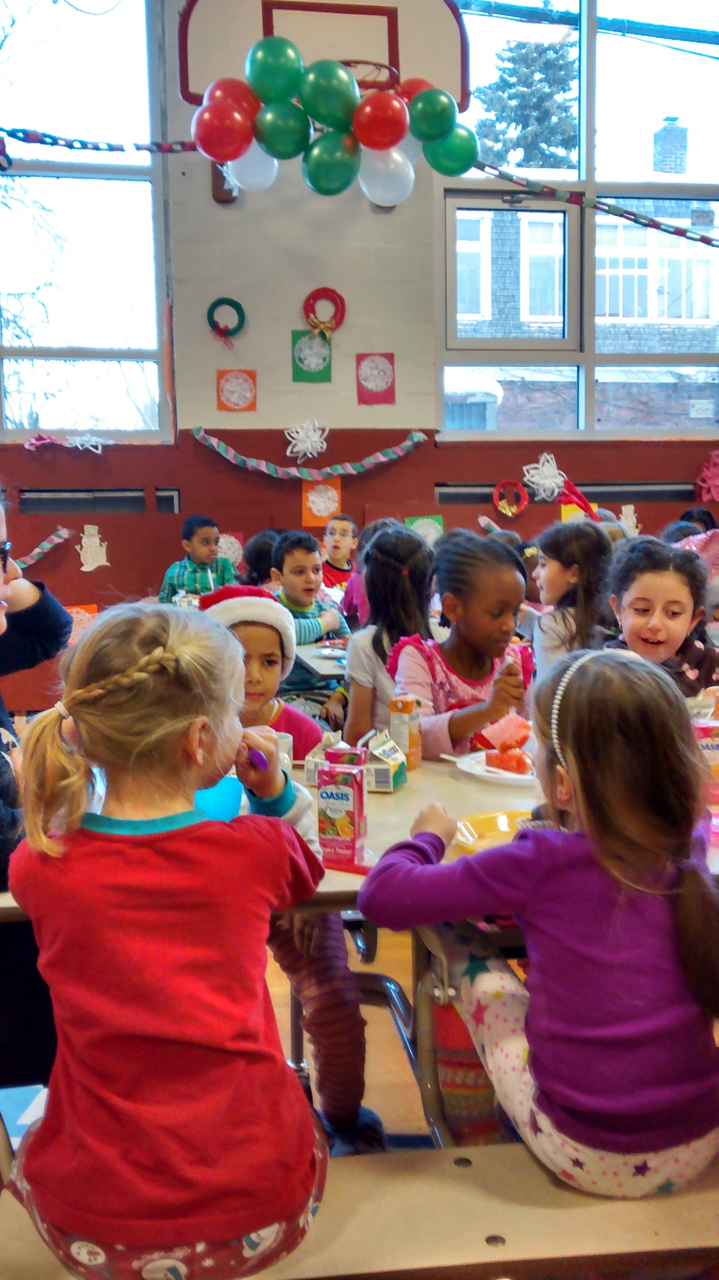 Ce fut un grand succès ! En effet,  en plus de se sustenter, les enfants, les parents et tout le personnel de l’école ont eu beaucoup de plaisir, accompagnés du Père Noël bien-sûr, à festoyer et à écouter chanter la chorale de l’école.